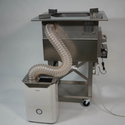 Der Anschluss anderer eventuell bereits vorhandener Luftentfeuchter ist mit ein wenig Bastelarbeit problemlos möglich. Es muss nur der Schlauch an der Ausblasseite des Luftentfeuchters so befestigt werden, dass ein so großer Teil der Luft in den Honigtrockner geblasen wird, dass der Luftstrom an der Ausblasöffnung der Haube (in ca. 5 cm Abstand) an der vorgehaltenen Hand deutlich spürbar ist. Bei Bedarf beraten wir Sie diesbezüglich gerne.