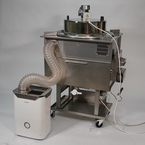 Der Honigtrockner D4 funktioniert ohne die gezeigte Haube unter der Voraussetzung, dass ein geeigneter Raum vorhanden ist, in dem die für die Bearbeitung / Trocknung des Lebensmittels Honig notwendigen Temperaturen, die trockene Luft, die Sauberkeit und die Unzugänglichkeit für Bienen / Tiere gegeben sind oder hergestellt werden können. Da diese Voraussetzungen nicht immer realisierbar sind, bieten wir die Haube C4 an.